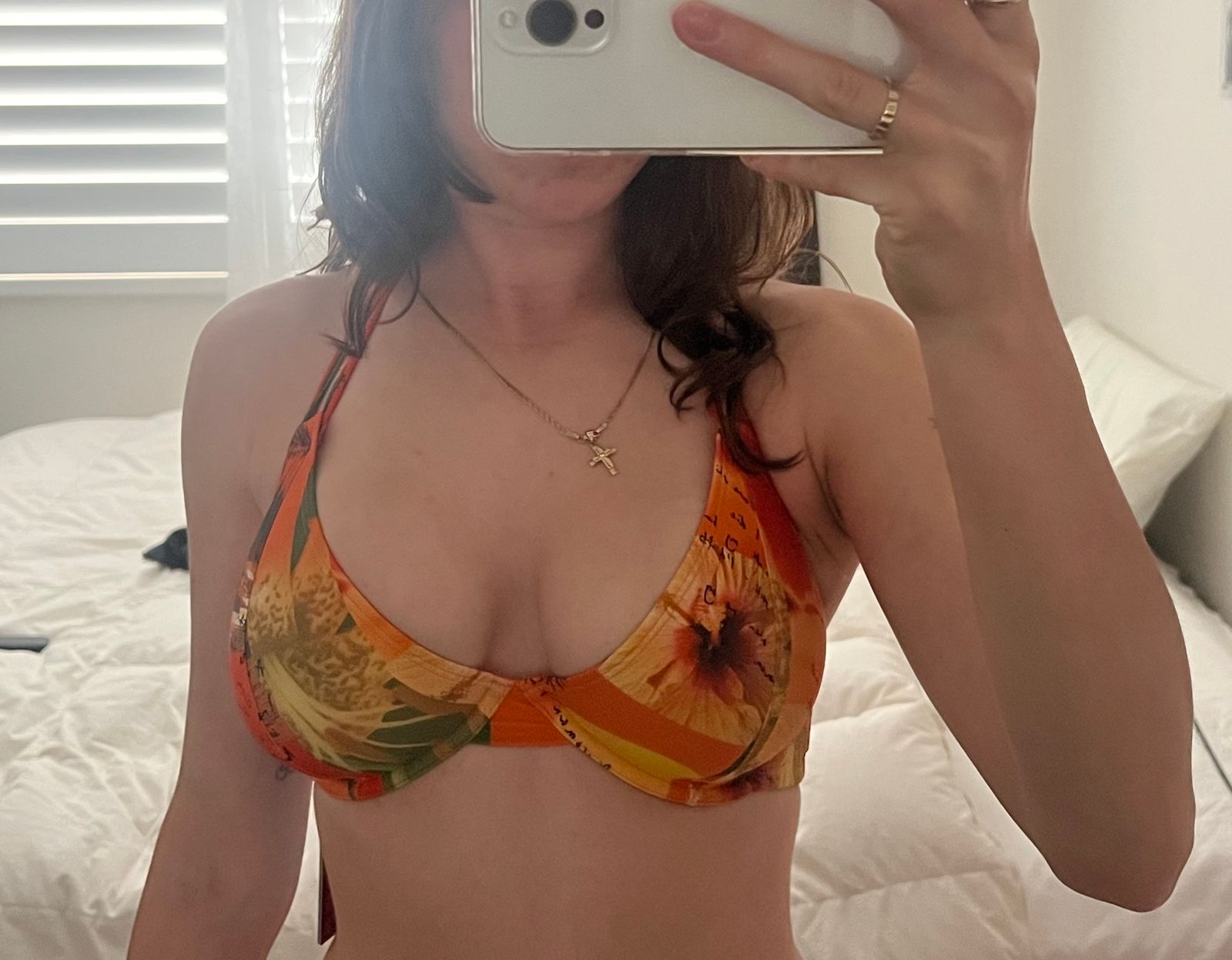 Being a 12 GG it is impossible to find cute supportive bikinis. I put this top on as soon as it came in the mail and was in tears of joy by the comfort and support and how cute it looked on. Im so impressed. I can finally feel sexy, confident and supported in a bikini. I cant wait to show this of in a sunset photoshoot.