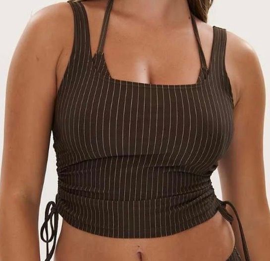 The swim singlet is so comfy and gives me a bit of extra coverage when I need it. It also goes perfectly with my pastel pink with brown trim bikini set. So it’s perfect to mix and match, not just with the choc pinstripe. It’s super cute, really comfortable and exactly what I was after to go with my RAQ bikini set. I hope they bring out more colours!